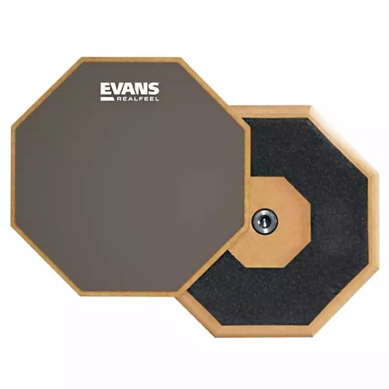 El Evans RF6GM es un pad de práctica de un solo lado de 6 pulgadas con una superficie de goma natural y un fondo de espuma suave. Está diseñado para replicar el rebote de una caja y puede usarse como un sustituto silencioso de un tambor acústico. El RF6GM tiene un inserto roscado de 8 mm en la parte inferior para montarlo en la mayoría de los soportes de platillos estándar o en el soporte de pad de práctica Evans ARFSTD. También es lo suficientemente pequeño como para guardarlo en una bolsa para palos.