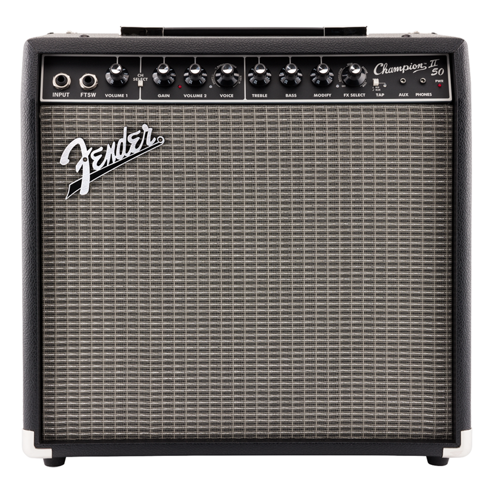 Ya sea que estés buscando tu primer amplificador de práctica o un equipo de escenario potente y asequible para tocar en una banda, hay un amplificador Champion II ideal para ti: es fácil de usar y lo suficientemente versátil para cualquier estilo de guitarra. El Champion II ofrece los reconocidos tonos limpios y saturados de Fender, junto con una variedad de sonidos de distorsión británicos y modernos. Desde jazz hasta country, y de blues a metal, es fácil encontrar el sonido adecuado. También incluye una selección de efectos integrados como reverberación (reverb), retardo/eco (delay), chorus, trémolo, Vibratone y más. Los tiempos de delay y la velocidad del trémolo pueden ajustarse fácilmente con el botón TAP para coincidir con el tempo de las canciones.