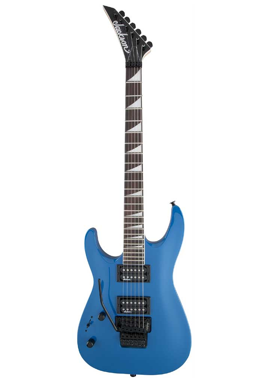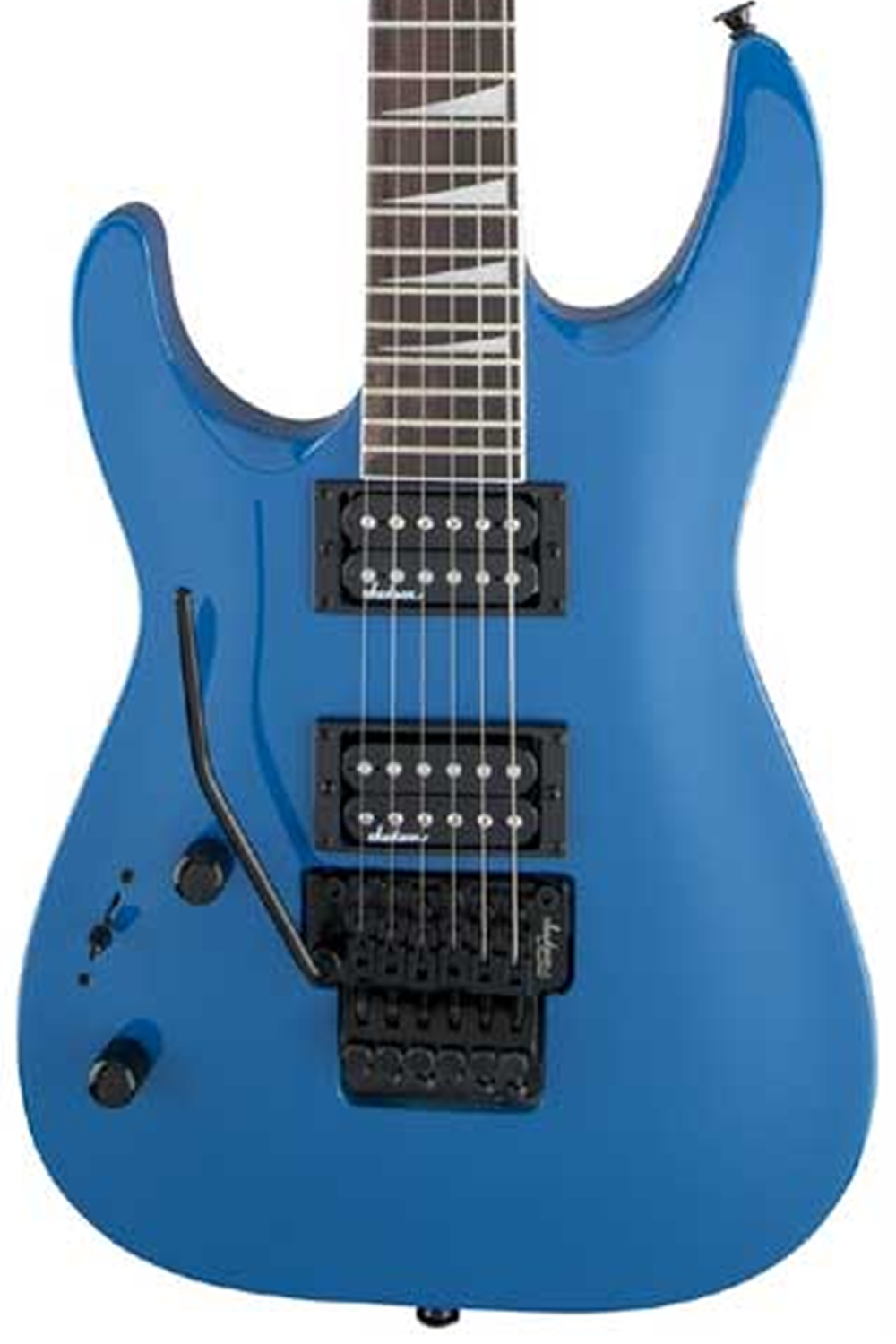 La JS Series Dinky™ Arch Top JS32 DKA LH es una guitarra para zurdos con cuerpo de álamo y mástil de arce atornillado con refuerzo de grafito, diseñada para ofrecer estabilidad y velocidad. Cuenta con 24 trastes jumbo y diapasón de amaranto con radio compuesto 12”-16”, cómodo para acordes en la zona baja y ideal para solos y bends en los trastes altos. Equipada con dos humbuckers Jackson de alta salida, selector de 3 posiciones, volumen y tono, ofrece un sonido potente y definido. Incluye puente Floyd Rose® de doble bloqueo, hardware negro y acabado Bright Blue, pensada para rock y metal.
