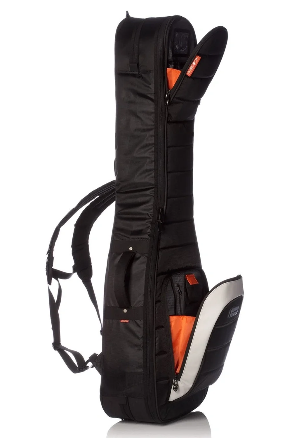 El diseño patentado en “zig zag” crea un compartimento completamente independiente para cada bajo. Esto significa que ambas palas están protegidas mediante el sistema de suspensión Headlock® y los protectores del pin de correa. También permite utilizar el estuche con uno o dos instrumentos, algo especialmente útil en giras. Además, el diseño Z-form permite acceder rápidamente a cualquiera de los dos bajos.