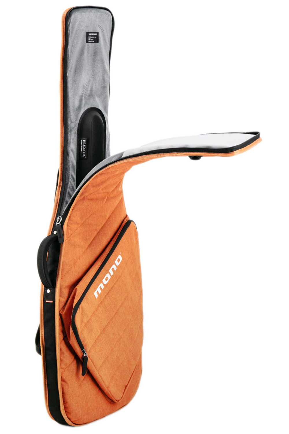 El Bass Sleeve Case incorpora una versión más estilizada del sistema Headlock, el sistema patentado de suspensión del mástil de MONO. Este Headlock más delgado está moldeado en goma EVA maciza con absorción de impactos para proteger el mástil y la pala frente a golpes durante caídas. Cuando el bajo está cerrado dentro de la funda, el mástil queda automáticamente asegurado en la ranura contorneada del Headlock.