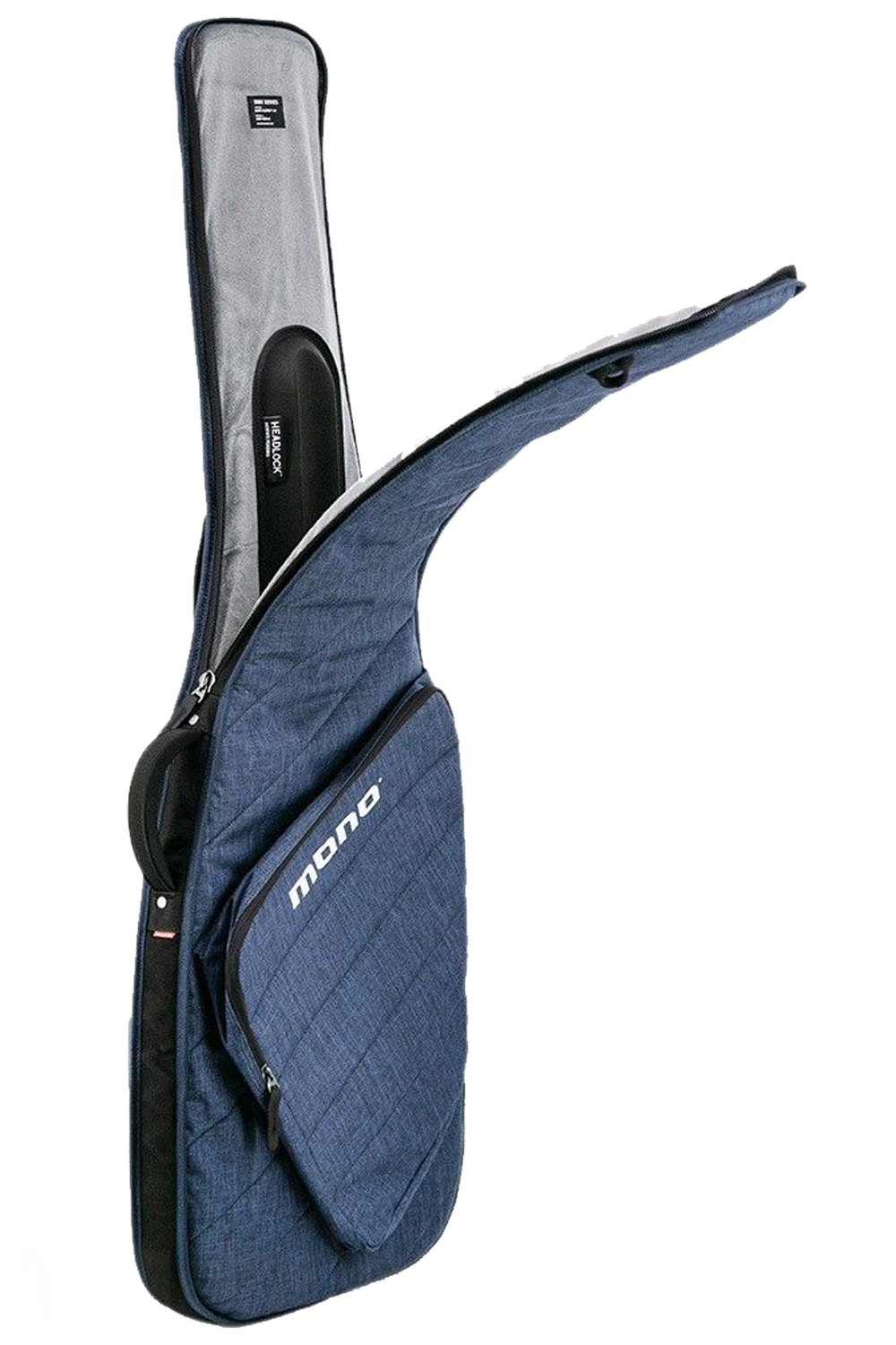 El Bass Sleeve Case incorpora una versión más estilizada del sistema Headlock, el sistema patentado de suspensión del mástil de MONO. Este Headlock más delgado está moldeado en goma EVA maciza con absorción de impactos para proteger el mástil y la pala frente a golpes durante caídas. Cuando el bajo está cerrado dentro de la funda, el mástil queda automáticamente asegurado en la ranura contorneada del Headlock.