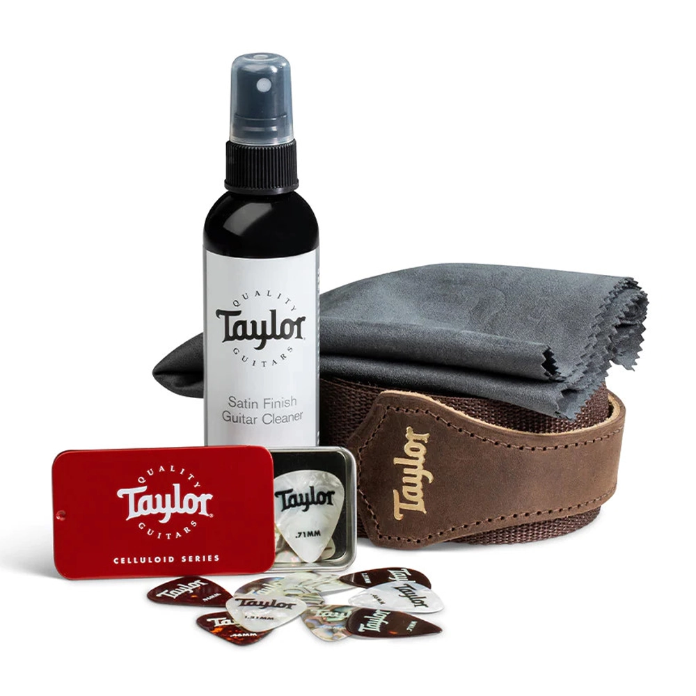 El Essentials Pack de Taylor te proporciona todas las herramientas necesarias para mejorar tu experiencia al tocar y mantener tu instrumento en óptimas condiciones. Incluye un spray para acabado satinado Taylor y un paño de microfibra que ayudan a restaurar el brillo original de fábrica de tu guitarra. También incorpora una correa totalmente ajustable, permitiéndote estar listo para tocar en el escenario en cualquier momento. El paquete se completa con un estuche para púas que contiene una selección de púas Taylor. Recomendamos este kit para cualquier guitarrista que desee combinar rendimiento y estética en su instrumento.
