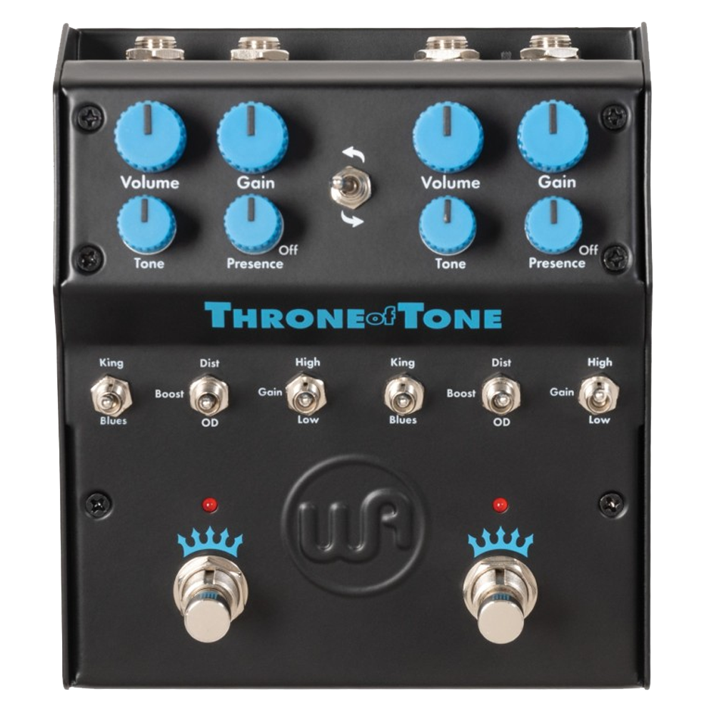 El Warm Audio WA-TOT Throne of Tone es un pedal de overdrive dual inspirado en circuitos británicos. Cuenta con dos canales idénticos que ofrecen múltiples modos y ajustes de ganancia, incorpora circuitos JRC4580 y TL072, funciona internamente a +18V y dispone de un interruptor para cambiar el orden de los efectos.
